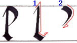 書き順2 始点を”I”の頂点に合わせます。