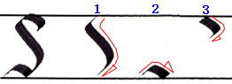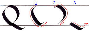 書き順1 細い線をしっかり出してから右下に向かって柔らかく