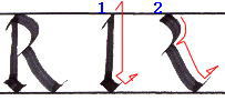書き順2 ”I”の頂点に始点を合わせ、上半身は”B”と同じ