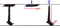 書き順2 短い水平線を引いてから書き順1の終点に向かって