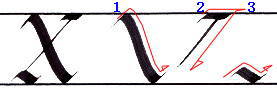 書き順3 ”V”の書き順2と同じ |